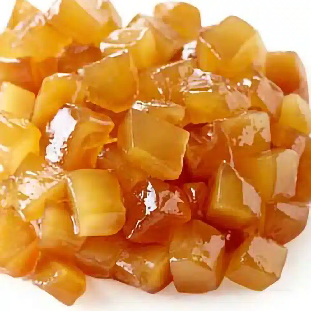 Glace Ginger Pieces are a versatile ingredient that elevates a vast array of culinary creations. Embrace the Baker Within: Infuse your cakes, muffins, and cookies with a burst of zesty ginger. Diced Glace Ginger adds a delightful textural contrast while the vibrant flavor cuts through the richness of pastries and breads. Elevate Your Desserts: Transform simple dishes into extraordinary experiences. Swirl chopped Glace Ginger into homemade ice cream or gelato for a refreshing and spicy surprise. Don’t Forget the Classics: Reimagine traditional fruitcakes and puddings by incorporating these jewel-toned pieces for a touch of fiery elegance. Glace Ginger is a timeless addition to festive desserts, adding a touch of nostalgic charm.